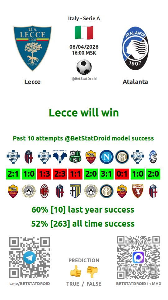 ✔ Лечче забивает меньше 2,5 голов в 41 матчах