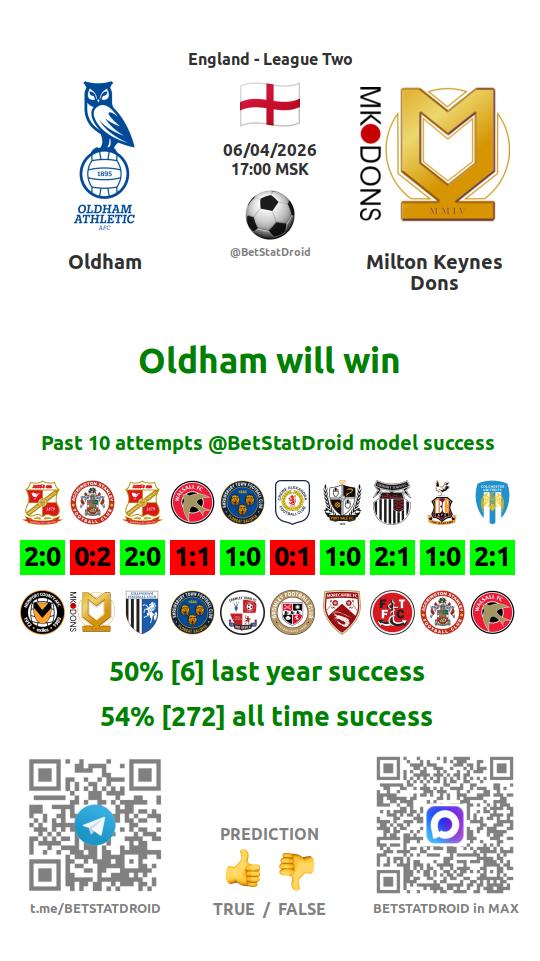 ✔ Олдхэм пропускает меньше 1,5 голов в 6 матчах