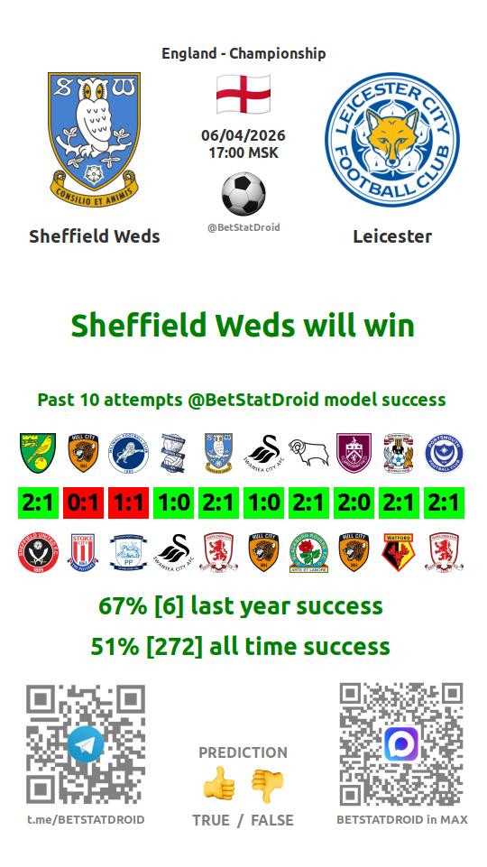 ✔ Шеффилд Уэнсдей не выигрывает в 21 матчах
