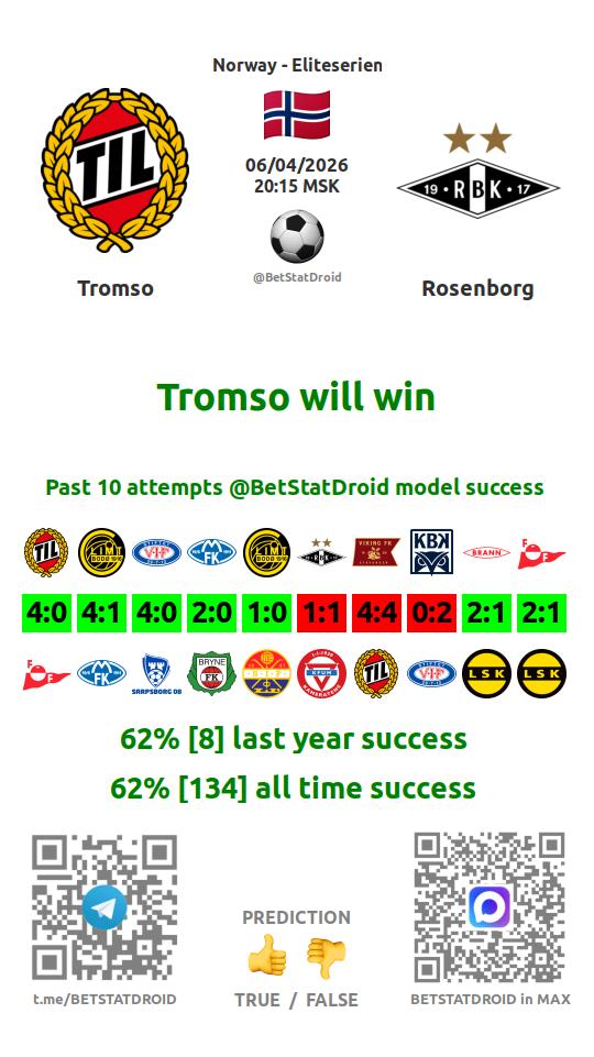 ✔ Тромсе выигрывает в 4 матчах