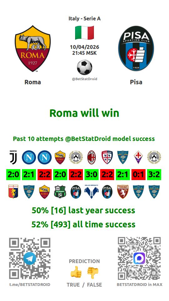 ✔ Пиза забивает меньше 2,5 голов в 15 матчах