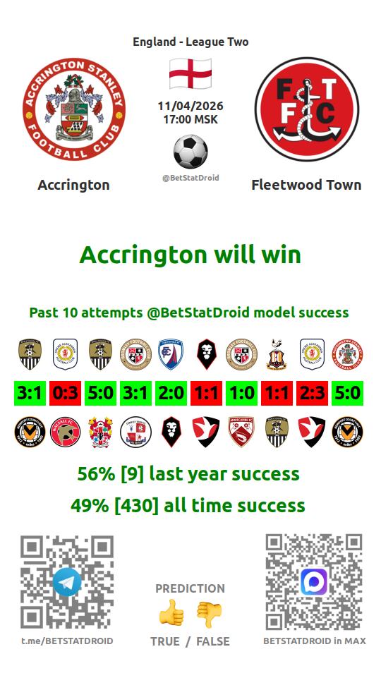 ✔ Аккрингтон забивает в 5 матчах