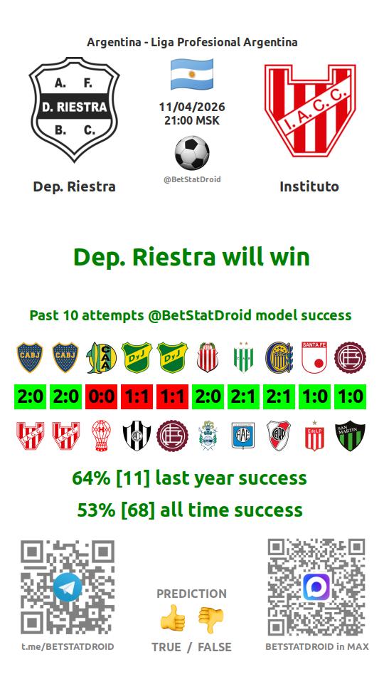 ✔ Институто не выигрывает в 12 матчах