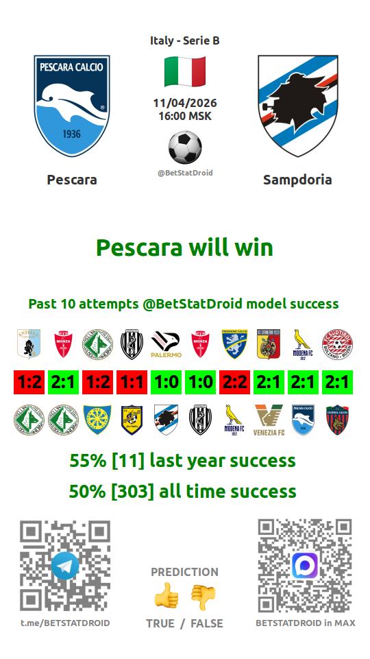 ✔ Пескара забивает в 7 матчах