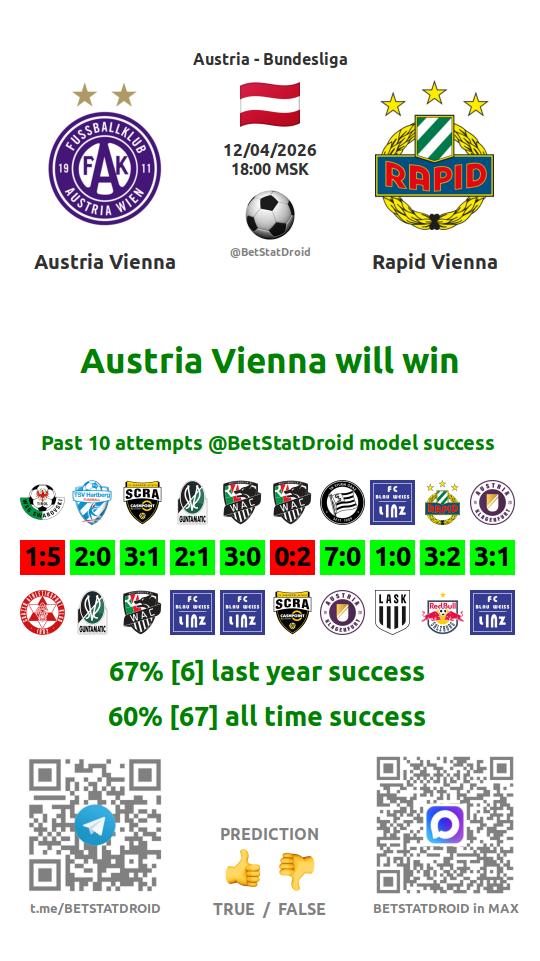 ✔ Рапид Вена забивает меньше 2,5 голов в 32 матчах