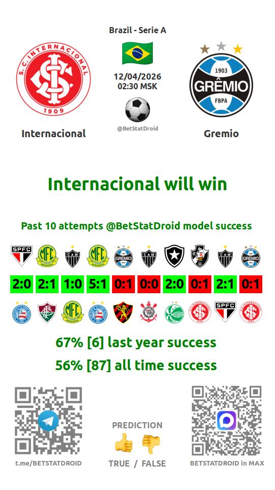 ✔ Интернасьонал забивает в 4 матчах
