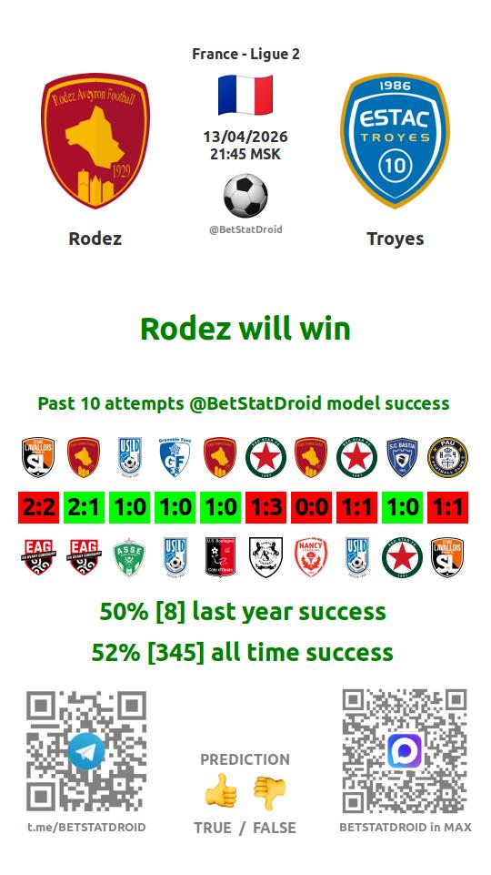✔ Родез забивает в 10 матчах