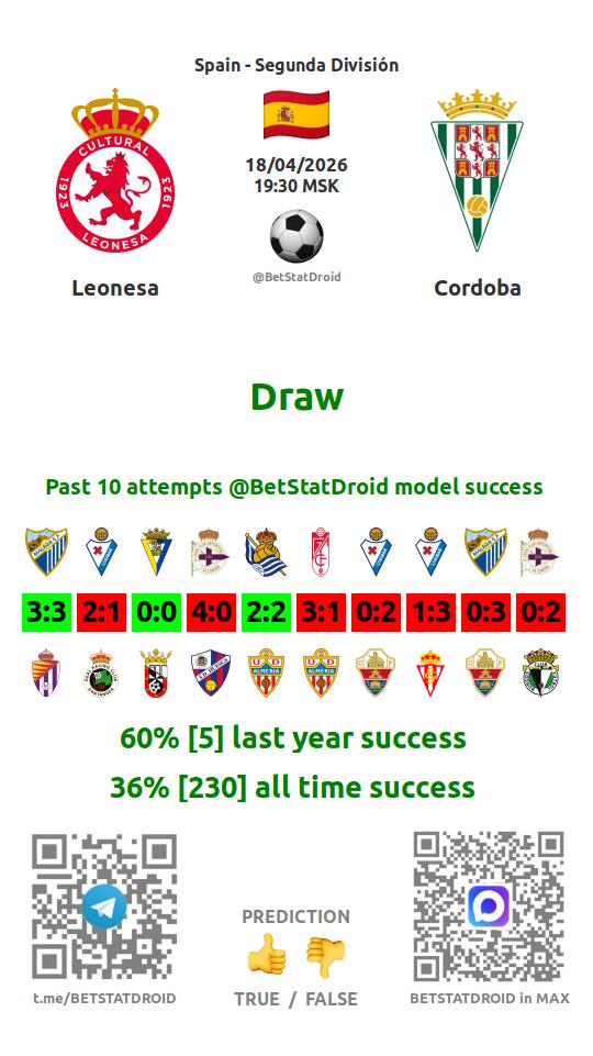 ✔ Культураль Леонеса забивает меньше 1,5 голов в 13 матчах