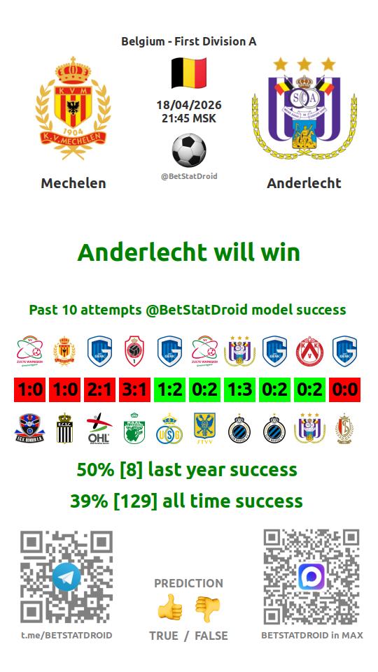✔ Мехелен забивает меньше 2,5 голов в 13 матчах