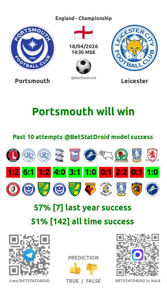 ✔ Портсмут пропускает меньше 2,5 голов в 41 матчах
