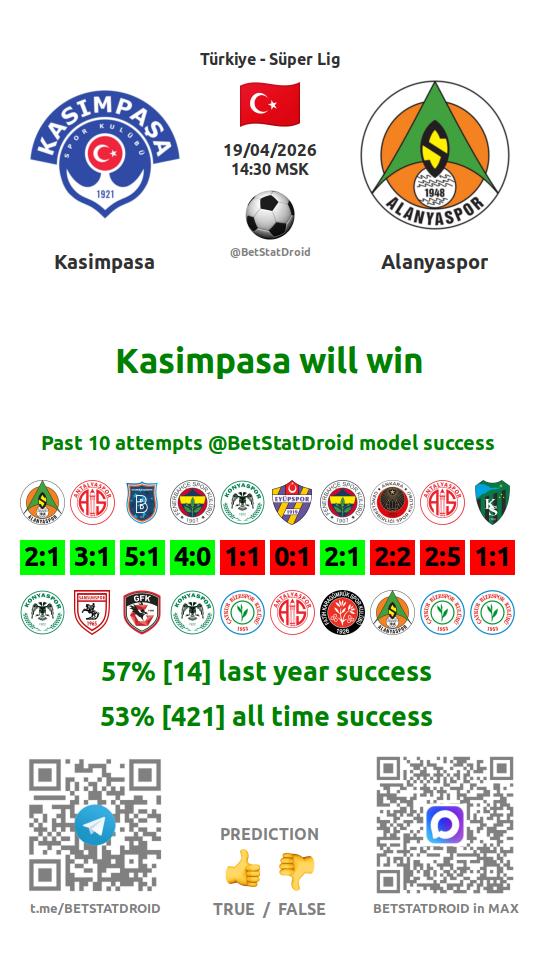 ✔ Касымпаша забивает больше 1,5 голов в 8 матчах
