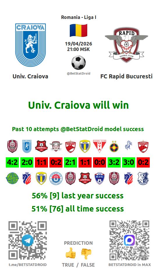 ✔ Университатя Крайова забивает в 4 матчах