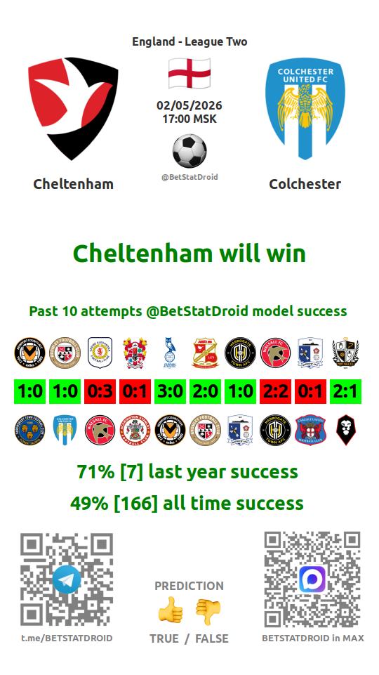 ✔ Челтнем забивает меньше 2,5 голов в 9 матчах