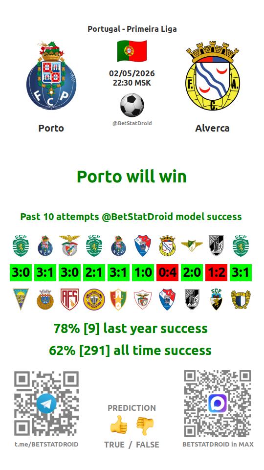 ✔ Алверка забивает меньше 1,5 голов в 5 матчах