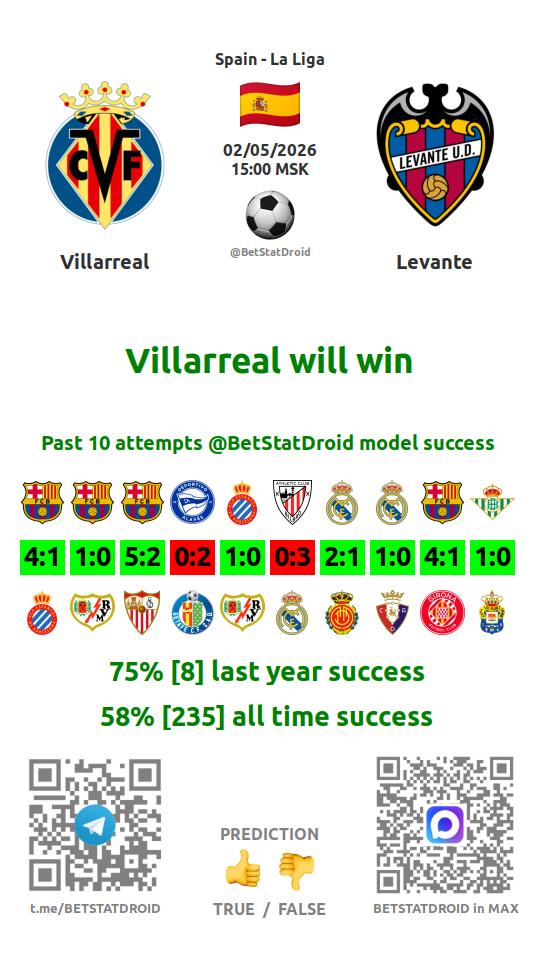 ✔ Леванте забивает меньше 1,5 голов в 8 матчах