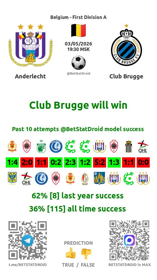 ✔ Андерлехт забивает меньше 2,5 голов в 25 матчах
