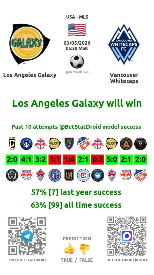 ✔ Лос-Анджелес Гэлакси забивает меньше 2,5 голов в 8 матчах