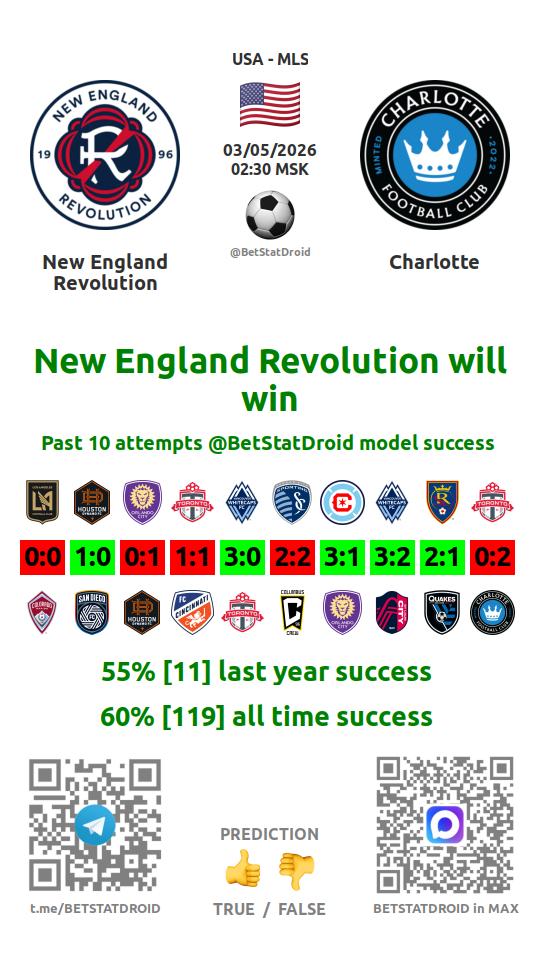 ✔ Нью-Инглэнд Революшн пропускает меньше 2,5 голов в 10 матчах