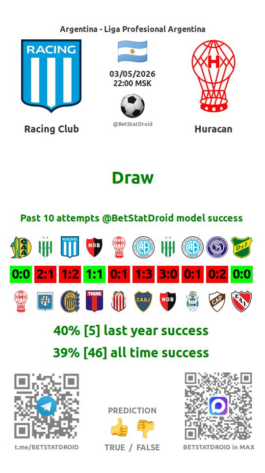 ✔ Расинг Авельянеда забивает меньше 2,5 голов в 9 матчах