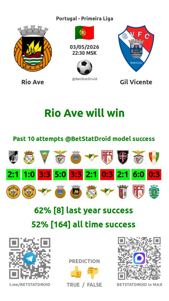 ✔ Риу Аве пропускает меньше 2,5 голов в 10 матчах