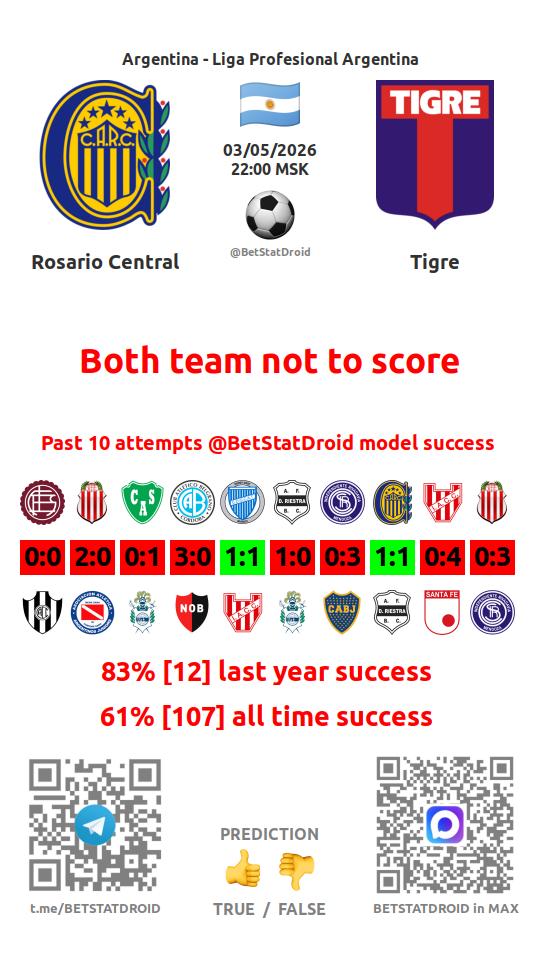 ✔ Росарио Сентраль забивает меньше 2,5 голов в 11 матчах