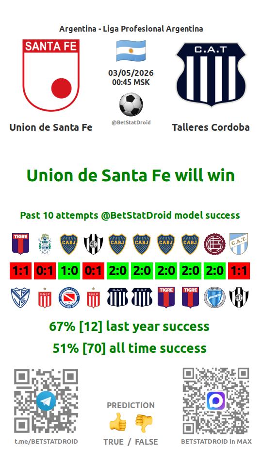 ✔ Унион Санта-Фе забивает меньше 2,5 голов в 8 матчах