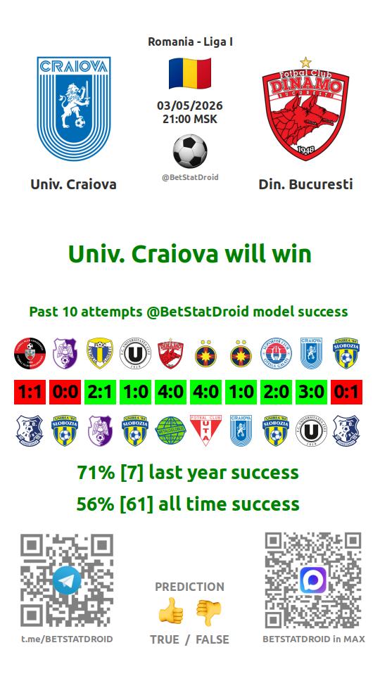 ✔ Университатя Крайова не проигрывает в 6 матчах